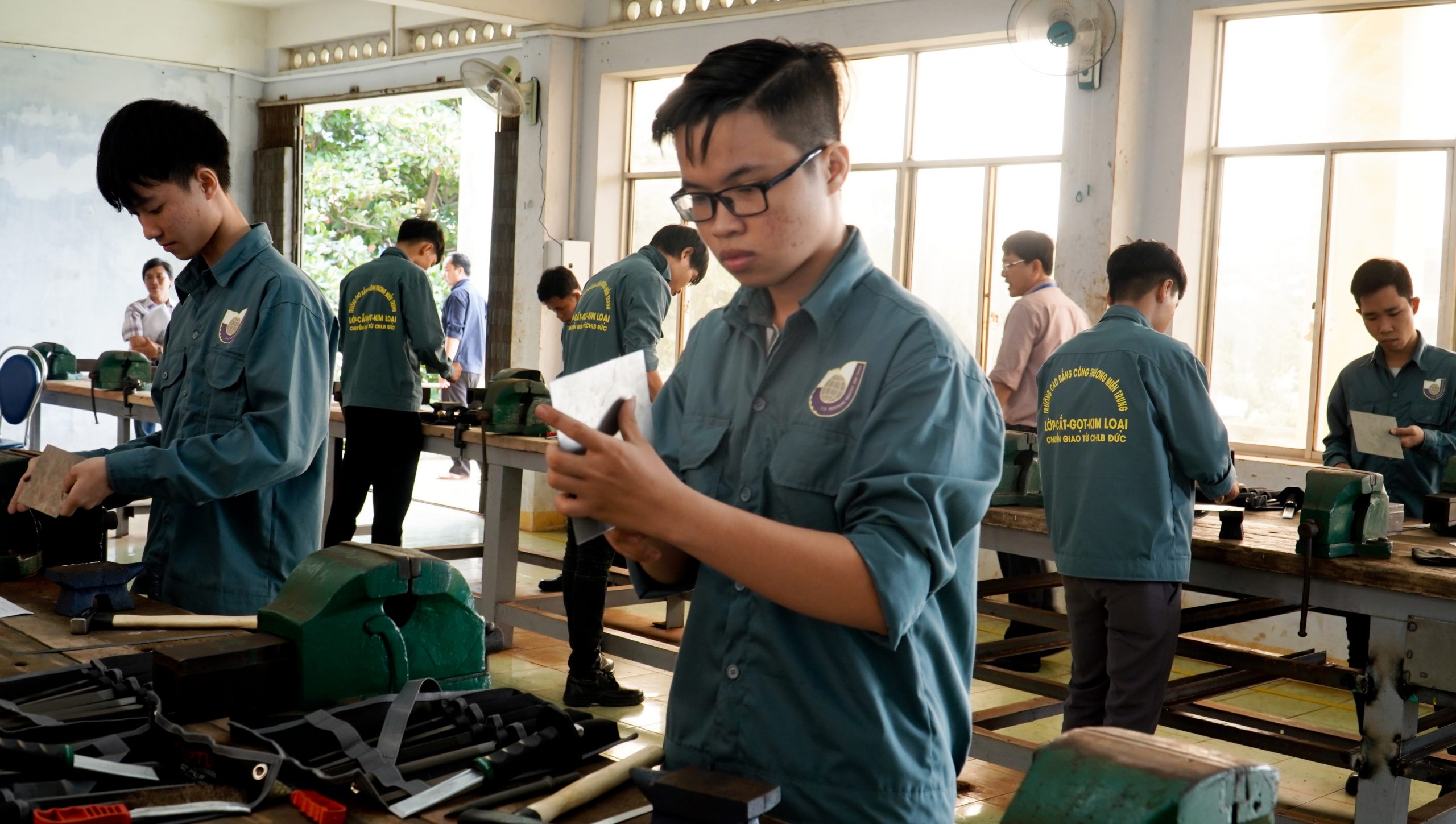 Trần Minh Quang (quê Hòa Hiệp bắc, huyện Đông Hòa) không nghĩ vậy. Tốt nghiệp kỳ thi THPT quốc gia 2017 với điểm số vượt chuẩn của nhiều trường đại học song Trần Minh Quang chọn học nghề Công nghệ Chế tạo máy hệ Cao đẳng tại MITC. Năm đó, Quang là thủ khoa ngành Công nghệ Chế tạo máy và cũng là thủ khoa đầu vào của MITC. Em được nhận học bổng toàn khóa học. Với Quang: “Em chọn nghề mà em thích chứ không đặt nặng bằng cấp hay chọn một ngôi trường danh giá. Em nghĩ rằng nếu nỗ lực học tập và rèn luyện tay nghề thật tốt thì dù là bậc học thấp hơn nhưng cơ hội việc làm còn rộng mở hơn bậc đại học. Nếu muốn, em có thể học liên thông cao hơn sau này”. 18 tuổi tự tin và chủ động lựa chọn hướng đi cho mình, chắc chắn không phải ai cũng làm được; bởi rất nhiều thứ vây quanh một người trẻ: sự kỳ vọng của cha mẹ, rào cản của xã hội trọng bằng cấp, trải nghiệm và kỹ năng tìm hiểu lựa chọn còn hạn chế… Sau Quang một khóa, Nguyễn Xuân Thời (sinh năm 2003) cũng là gương mặt thật đặc biệt. Thời chọn học nghề Hàn hệ Trung cấp sau khi tốt nghiệp THCS mà không tiếp tục học THPT như các bạn đồng trang lứa mặc dù Thời có học lực khá tốt. “Em chọn nghề Hàn vì sẽ dễ tìm việc làm, nghề này luôn thiếu lao động trong nhiều năm. Bố mẹ em đồng ý với quyết định của em”. Đó là lý do chọn nghề rất thực tế của cậu bạn 15 tuổi. Để có được sự chọn lựa đó, Thời đã tìm hiểu qua sự tư vấn của các cơ sở dạy nghề khi họ về các trường tư vấn thực hiện phân luồng học sinh sau THCS.