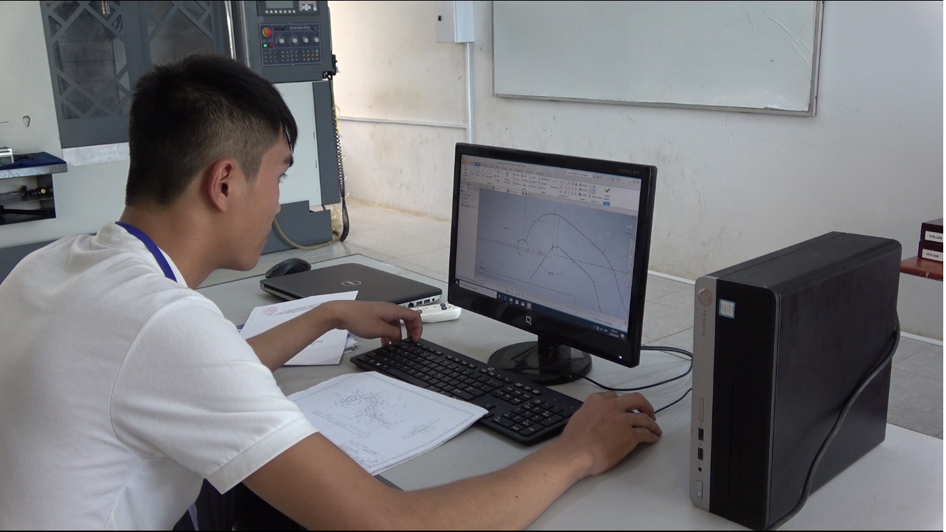 Sinh viên Trần Minh Quang thực hiện bài thi Thiết kế Cơ khí trên máy tính